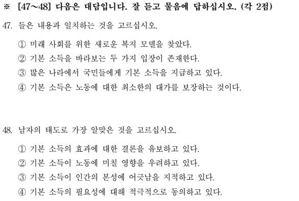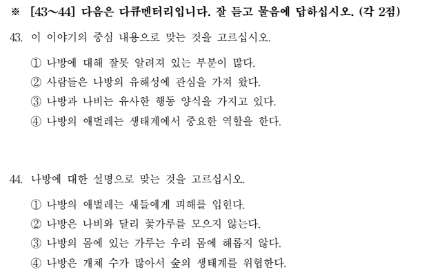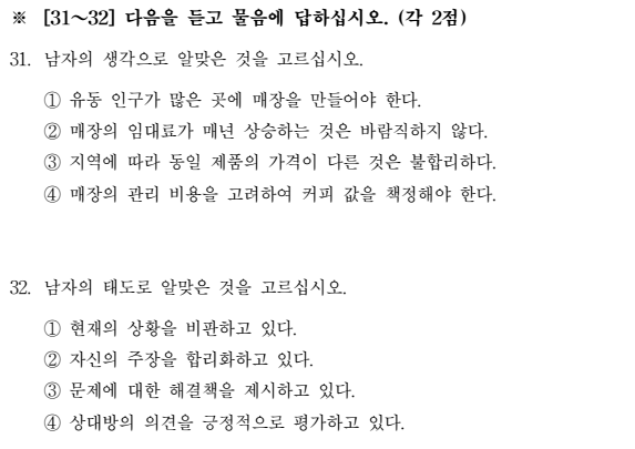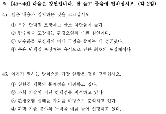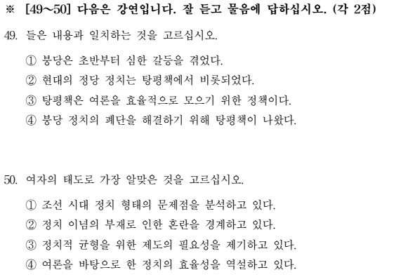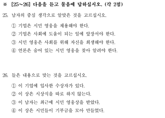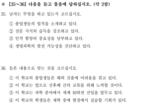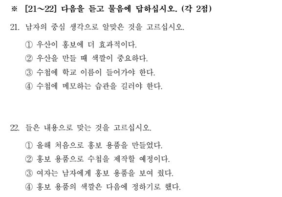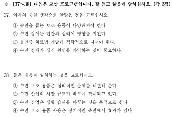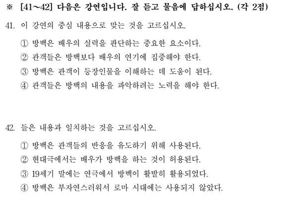 21-50题可以放两遍,一定要在听力前将题目和问题迅速读一遍,第一遍听时尽量就把答案听出来,第二遍听时要确认答案是否准确,这样会提高准确率。前面的文章也提到过,高级的听力部分主要涉及到专业方面的内容,平时多听韩国的新闻和广播会更好一些,但是会有一定的难度,因此建议学生多阅读报纸新闻。练习听力为什么要阅读呢?估计有很多学生有这方面的疑问吧?其实在听听力的时候出现自己知道的话题的话会更容易理解的,即如果是自己熟悉的内容我们可以更容易的推测出听力的内容。但是如果是我们不知道的话题,我们再努力听也不知道是说的什么。所以通过阅读接触一些专门性的知识,听力时就不会感到陌生,不会感到紧张了。
