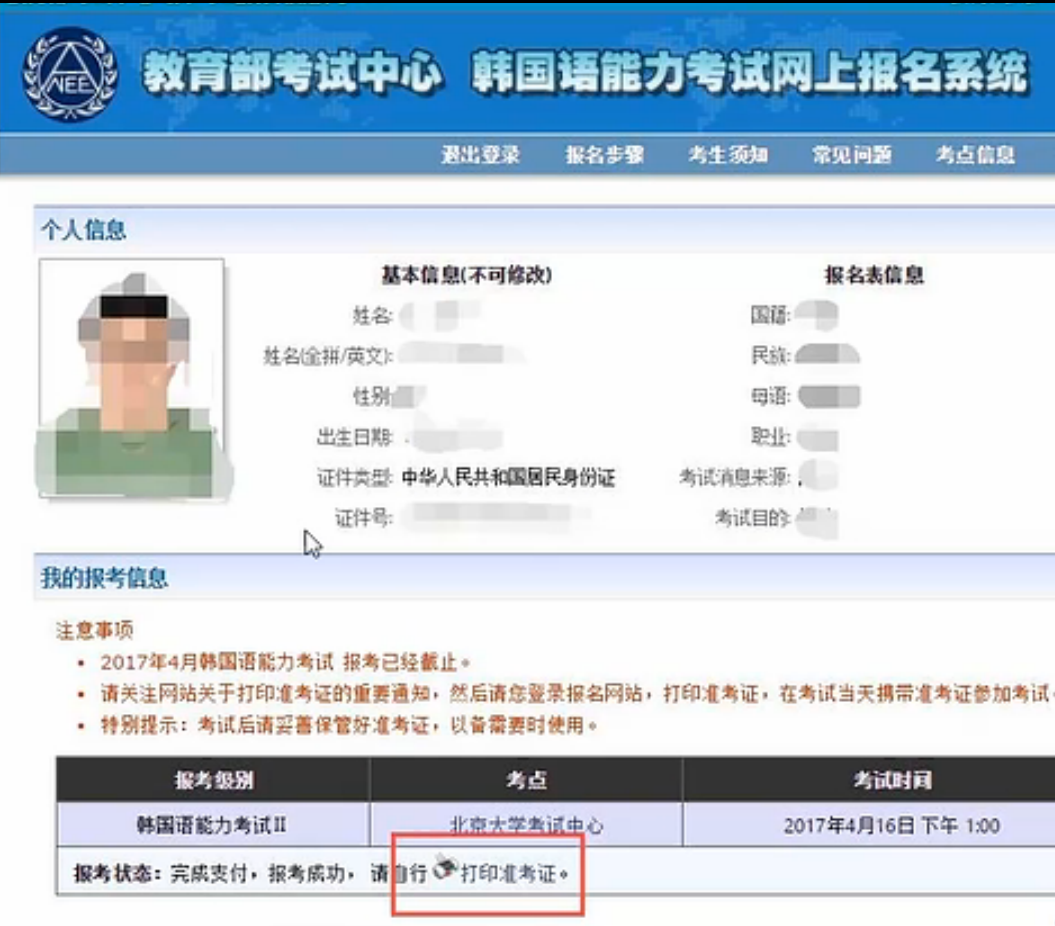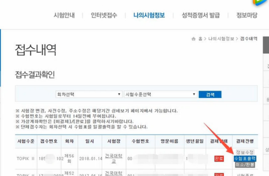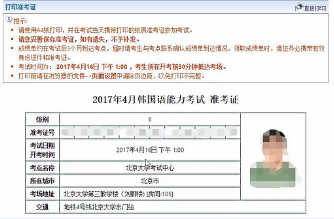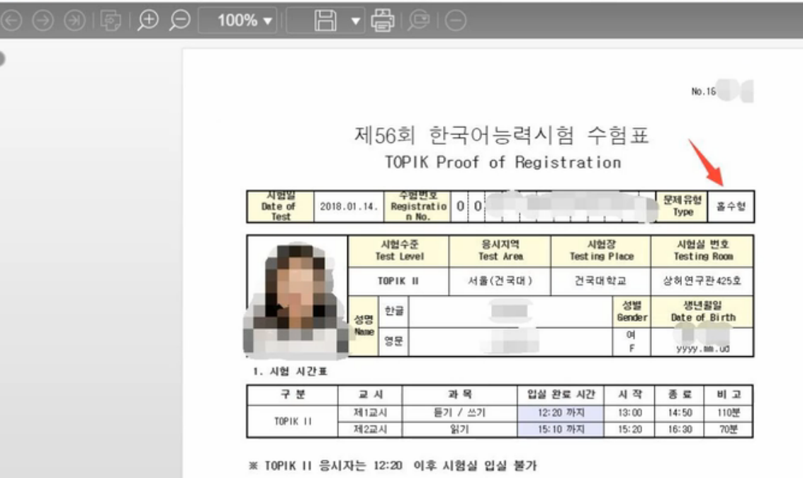57届TOPIK准考证可以打印了。