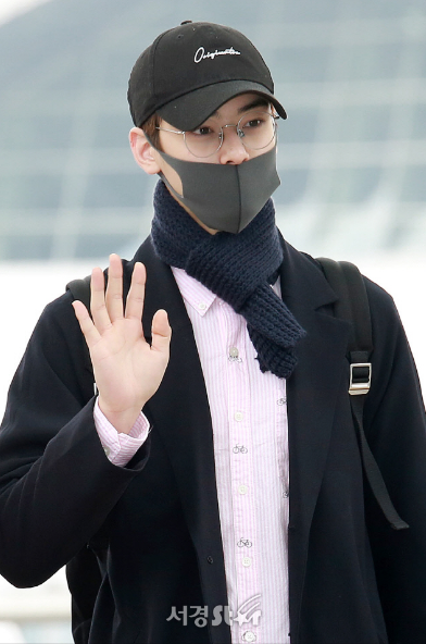 复古眼镜+棒球帽+麻花短围巾+衬衫+黑色外套