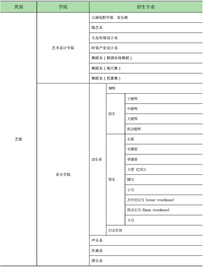 推荐院校:弘益大学、首尔大学、梨花女子大学、中央大学、庆熙大学等