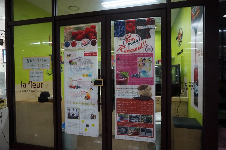 左边是카페드림,左边是la fleur。这边特别提提la fleur,这是花和饮料一起卖的咖啡厅。