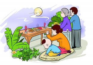 中秋节清晨,家家户户都会摆好新谷、水果酒、松饼、芋头汤和各式各样的水果祭拜祖先。除了祭拜之外,他们还有扫墓的习惯。