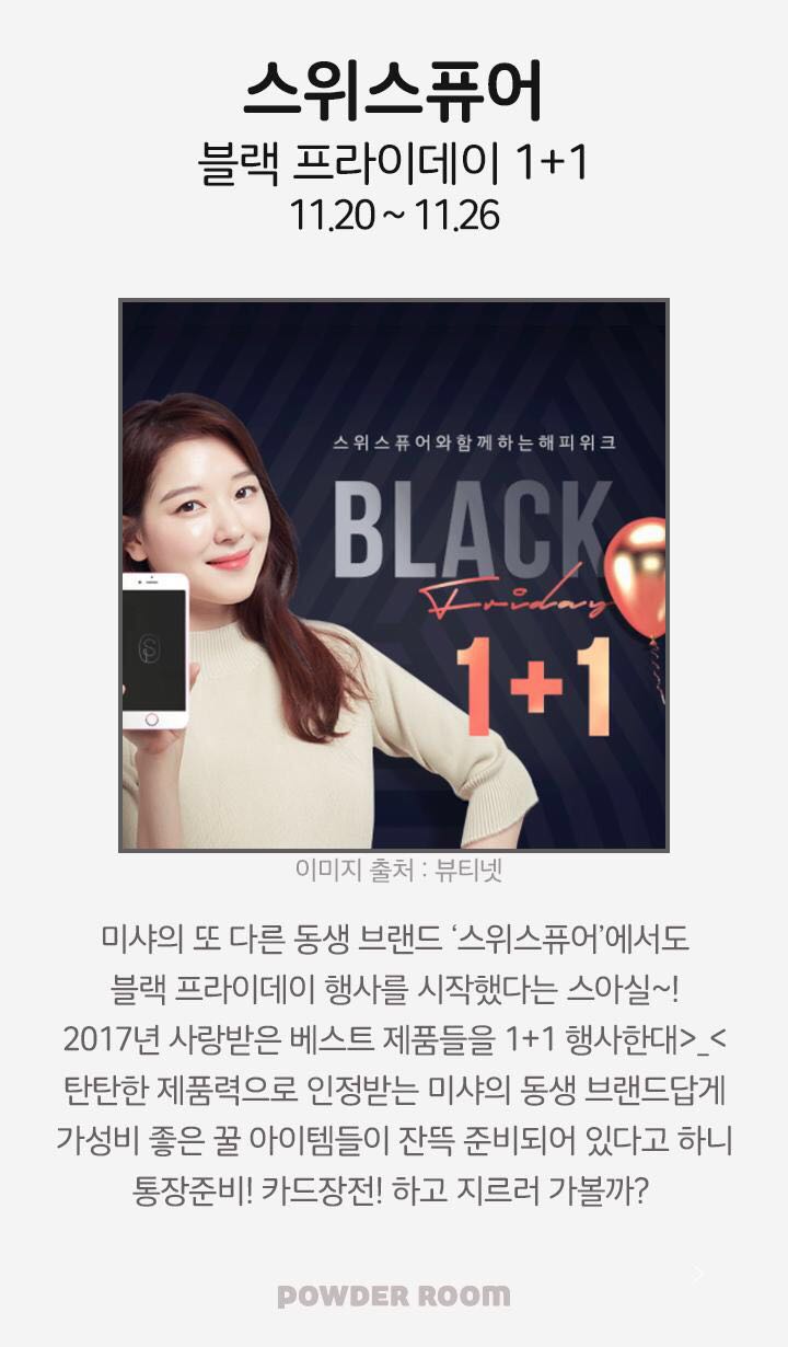 在韩国的宝宝们 还在为双十一没剁到手在伤心么? 슬퍼하지마 ~~~ 你们有黑色星期五啊 打折打到手抽筋啊 谜尚 本月21号到25号所有商品都买一送一 (可到宏大、明洞去购买) O-LENS 本...