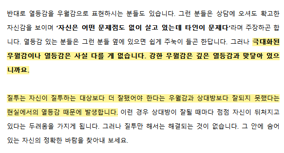 相反的,有些人会用优越感来掩饰自己的自卑感。这类朋友们就算是来商谈也是自信满满,主张全是他人的问题自己没有任何错误。强烈自卑的人在这些人面前很容易怯懦。但是,过大的优越感与自卑感并无异。因为强大的优越感与极大的自卑感是相互联系的。