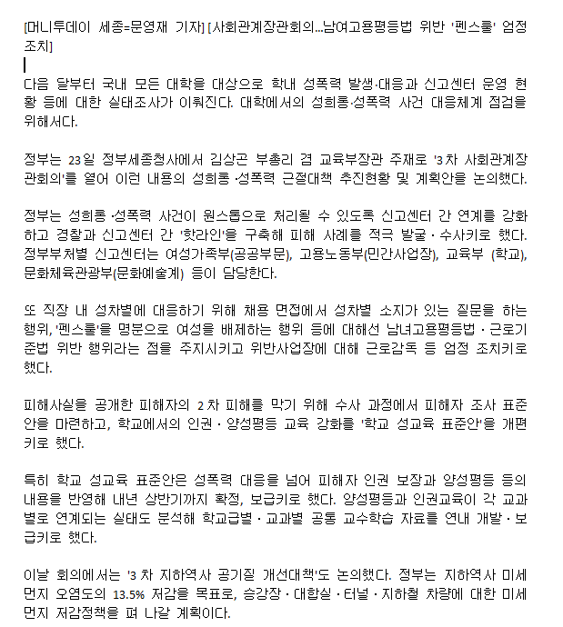韩国政府将对前段时间发生的教授性暴行事件做一个完结。