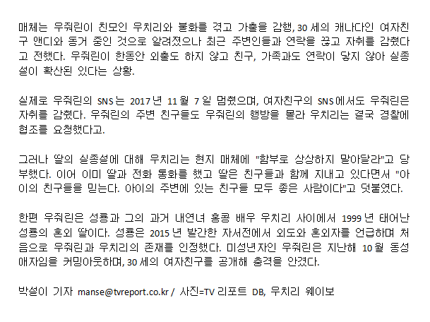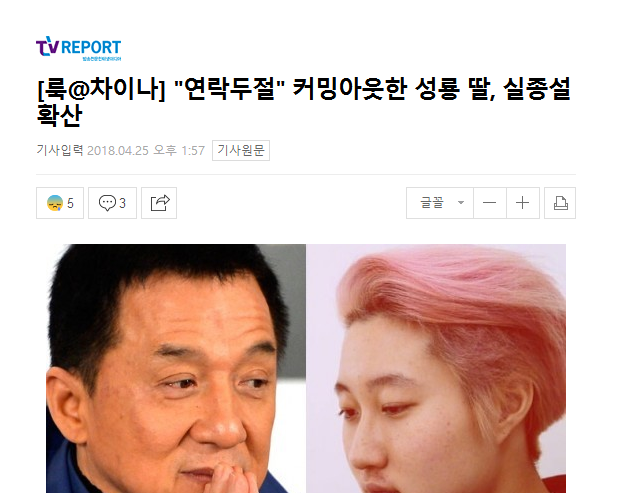 新闻题目也是:杜绝联系,同性恋爱者的成龙女儿失踪说扩散。