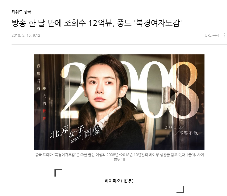 北京女子图鉴不仅在中国持续高收视率,在韩国也是备受关注,从学中文的学生到一般国民都偏爱中国的这一反应中国现实生活的剧。