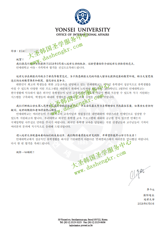 虽然我也知道我想学的专业对韩国人来说也是很难申请的,刚开始老师还建议我换一下专业,但看在我个人坚持的意愿上,大圣韩国升学服务中心的老师们决定帮助我实现理想。大圣韩国升学服务中心的老师根据我的情况,对我进行了背景提高指导,帮我制定了完美的留学准备方案,最终成功申请上了延世大学。