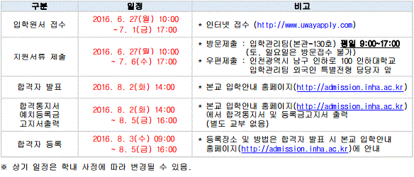 仁荷大学2016年9月本科新入招生简章
