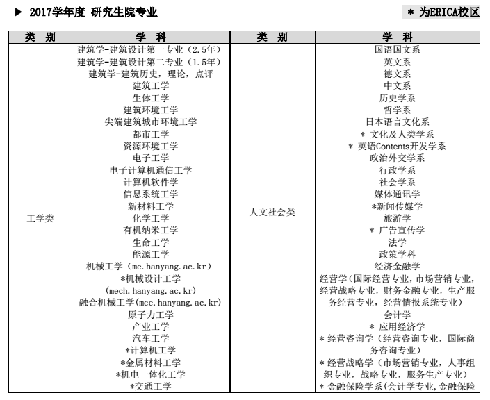 (大学院)【汉阳大学】2017年9月招生简章