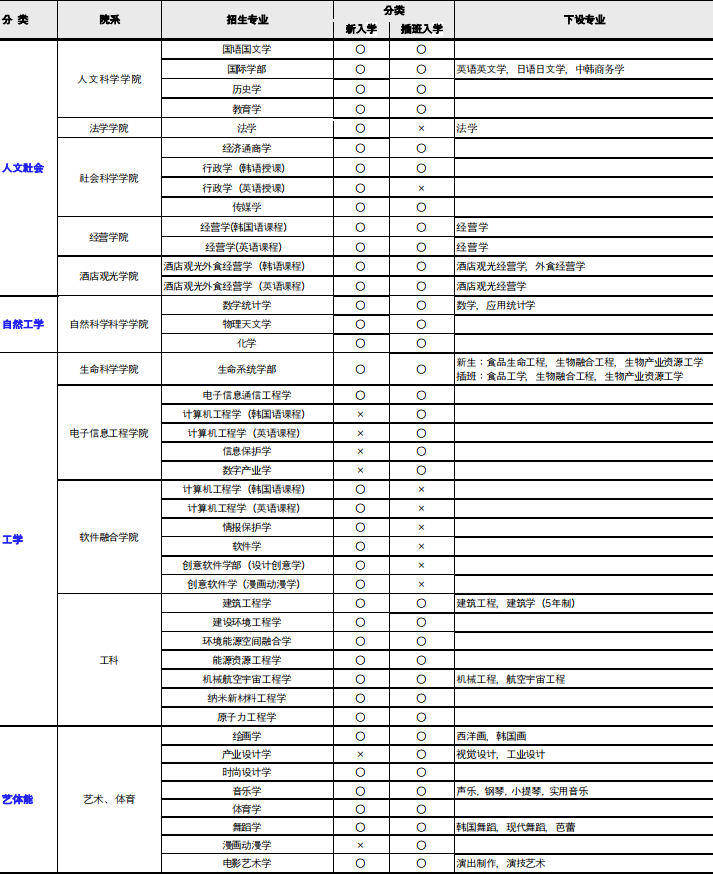 想去世宗大学读旅游管理、动漫、舞蹈?