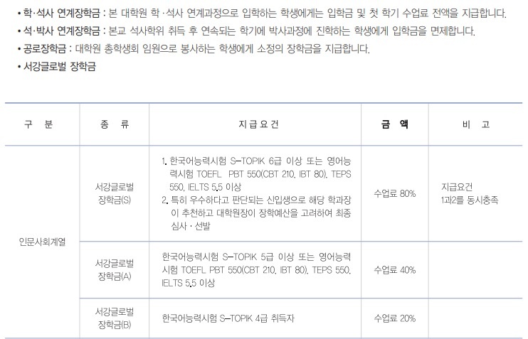 西江大学以拥有优秀的教师团队,高质量的教学,现代化的设施而闻名,已多年在全国客户满意度调查中,在韩国大学里名列第一。西江大学有许多在世界领先的专业,为社会输送了许多优秀的人才,其中就包括韩国历史上首位女总统朴槿惠,为繁荣韩国和世界经济、文化做出了贡献。
