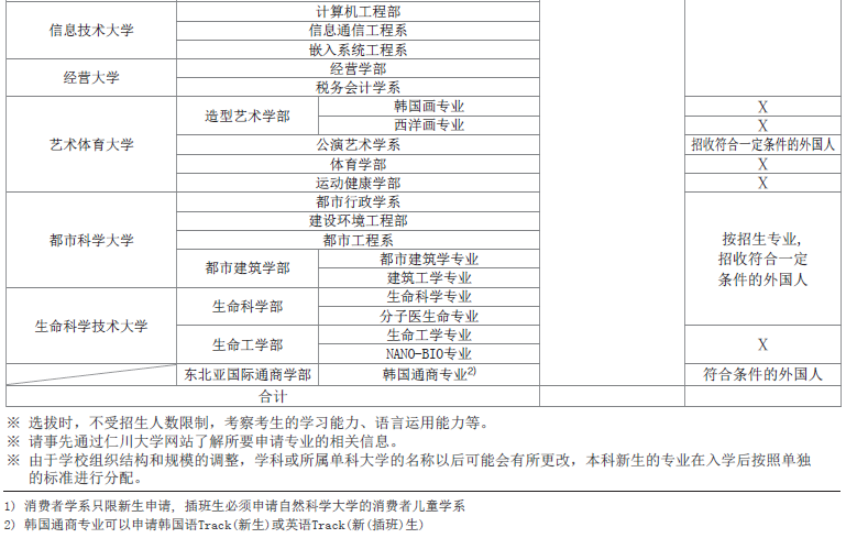 仁川大学在国际通商、国际物流、东北亚区域研究、中国学领域、IT(情报通信)领域、BT(生命工学)领域、NT(纳米技术)领域具有[特性化教育]、[国际化教育]、[一流化教育]的独有的教学模式。