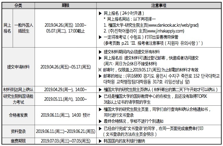 檀国大学19年9月大学院招生简章!!