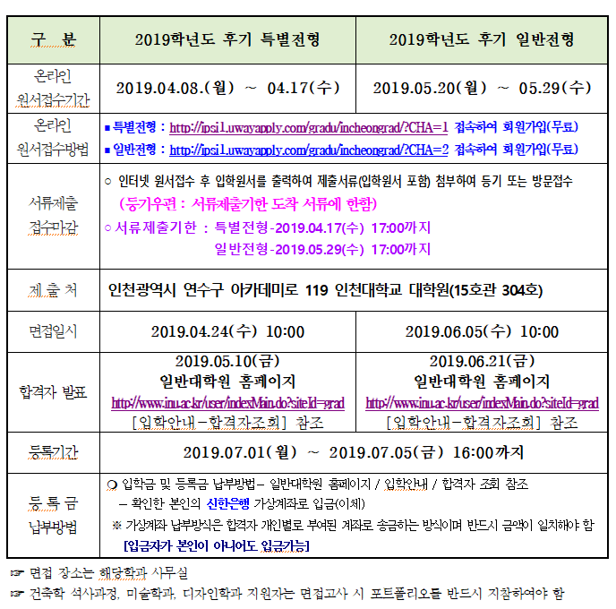 仁川大学2019年9月大学院招生简章