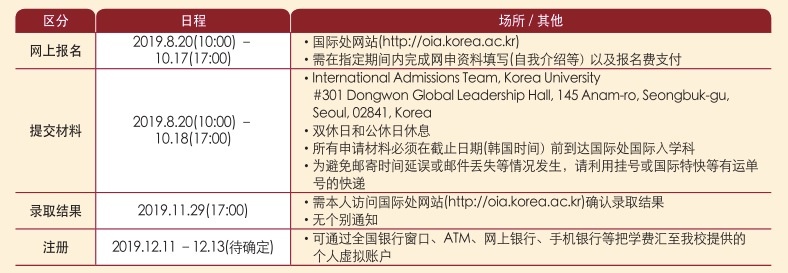 韩国高丽大学历史悠久,全韩大学排名第2位、私立综合大学第1位。2018-2019年QS世界大学排名中,高丽大学位列世界第86位。 2019年泰晤士高等教育世界大学排名(THE)中位列198位 。世界大学学术排名2016(ARWU)中位于全球第151-200位 。2019年度QS亚洲大学排名中位列第12位 。在2018QS世界大学学科排名中,高丽大学有7个学科排名全球前50,22个学科排名全球前100。