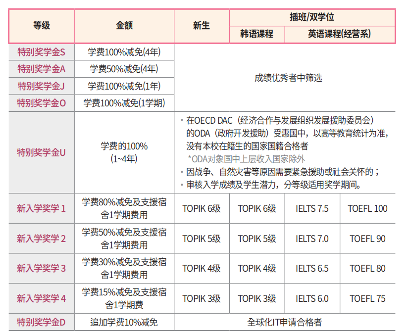 一、招生日程 二、报名费 三、招生单位 四、学费、 五、奖学金 1.新生入学奖学金 2.在校生奖学金 韩国留学免费咨询、规划服务,请联系大圣升学。 电话:18001399859 微信:cctiedu004...