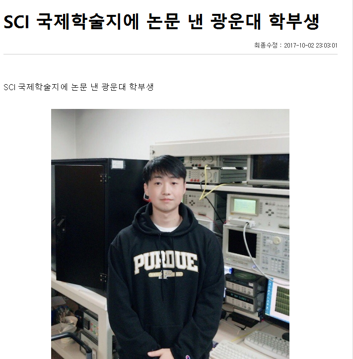 光云大学 电子材料工程系--机器人学部 本科在读生论文刊登SCI(国际学术期刊)