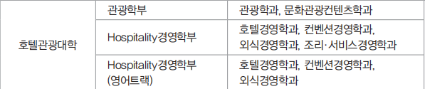韩文名称:호텔경영 컨벤션경영 외식경영 조리 서비스경영