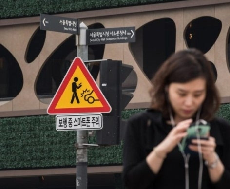 据悉,首尔大都市政府联合国家警察厅联合在事故高发区路段设置了新的警示标识,提醒行人走路时禁止看手机,这些区域包括宏达