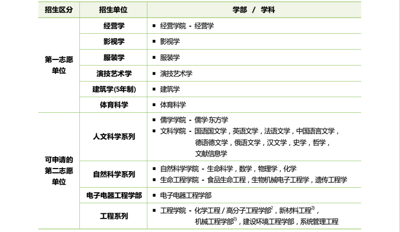 -可申请第二志愿的招生单位(第一志愿必填,第二志愿选择填写)