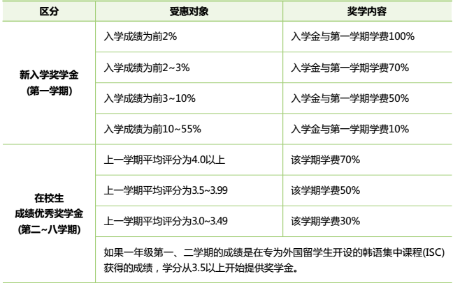 学校特色:历史悠久的名校,有着600多年的建校历史,全韩综合大学排名连续四年第一。学校背靠韩国第一大大财团——三星集团, 财政实力雄厚,科研资金极为丰富。本科根据GPA提供10%、20、35%奖学金,研究生提供50%奖学金。