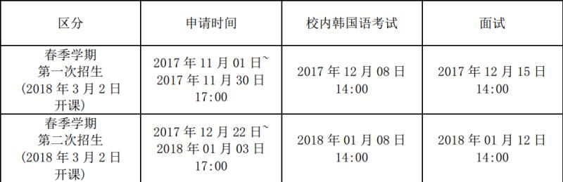 ※没有韩语能力考试3级以上成绩或韩国国内4年制大学所在韩语研究机构3级以上结业证的学生需要参加并通过