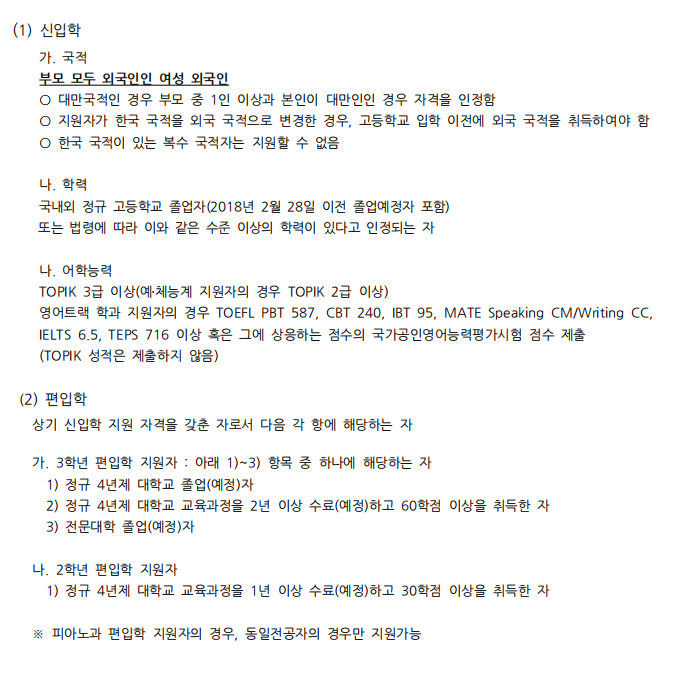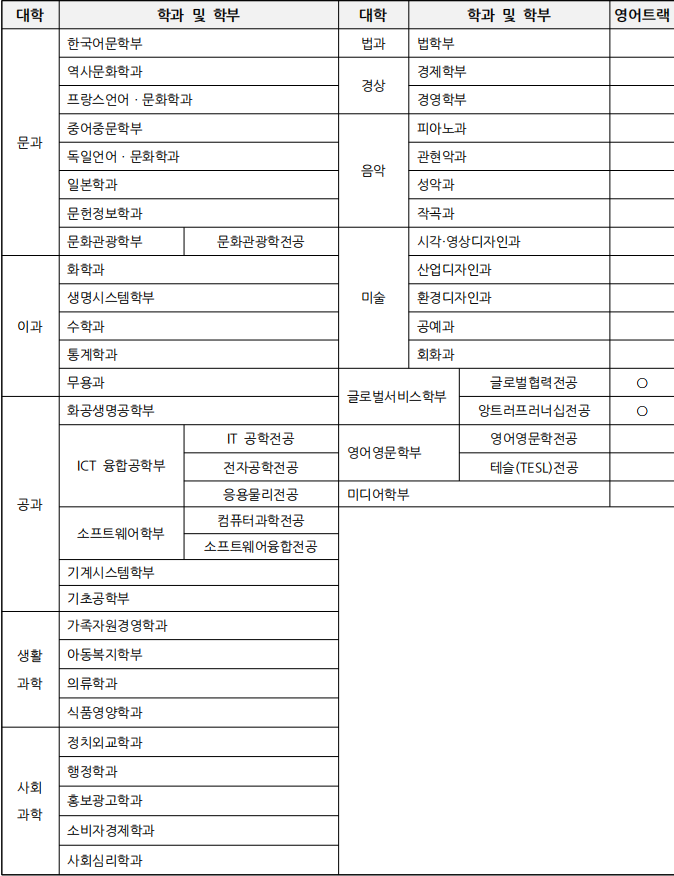 国语国文学、国际韩国语教育学、媒体文学创作、声乐、钢琴、影像设计、多媒体-舞蹈、纳米物理学等。