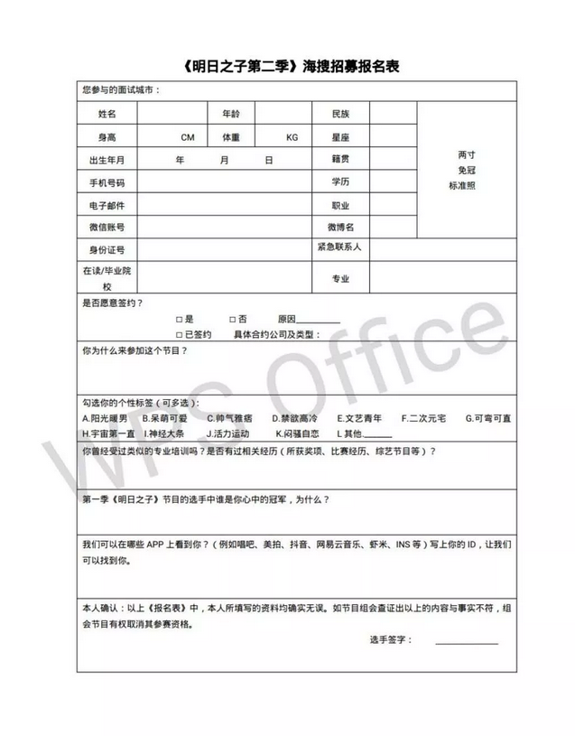 1.现场不提供报名表,所有选手请打印且自带下列报名表前往场地参加面试。(中央大学附近的复印店周六不开门)