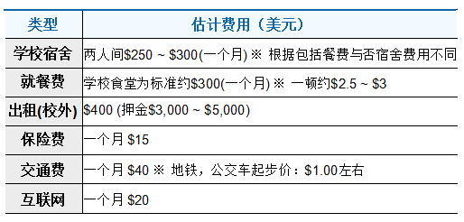 (下列生活费是作为参考的估计费用,实际生活费用根据个人生活方式会有差异。)