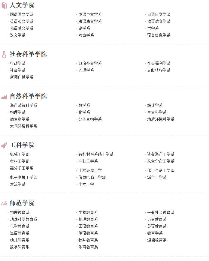 创建初期虽然只没有人文和水产两个专业,经多年发展,已成为覆盖全部主要学科的大型学术研究机构。釜山大学是名副其实的韩国重点院系之一。